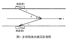 如圖2,換能器1向換能器2發(fā)射超聲波信號(hào),這是順流方向,其傳播時(shí)間為: