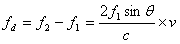 設(shè)流體流速為v,超聲波聲速為c,多譜勒頻移fd正比于流體流速v,即:
